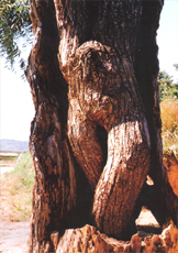 【中】 人們常說胸有成竹,但也只是聽說,真正見過的人很少。在福建屏南嶺頭村村北的北坡上,長著一株古老的紅豆杉樹,這也沒有什么稀奇,有趣的是一叢毛竹正好從這棵樹的胸膛中長了出來,形成了“胸有成竹”的趣景。這株樹至少有幾百歲的高齡,樹干早已成為空洞,南半部已經(jīng)開裂,毛竹鉆了這 個空子,從地下冒出,竄過樹洞挺然而出,這侏樹至今還滿樹青枝。 無葉樹您見過嗎?在四川石柱土家族自治縣挨河咀鄉(xiāng)紅旗村第二村民小組,發(fā)現(xiàn)一棵不長樹葉、不開花結(jié)果的前年古樹——馬鱗光樹。這棵樹高二十三米,樹圍三點二米,覆蓋地面近五百平方米,樹身光滑無殼,有各種花紋,呈棕黃色。據(jù)有關專家鑒定,是世界上較為稀有的樹種。有關部門現(xiàn)已采取嚴格的保護措施。 在我國的黑龍江和吉林省的交界處,生長著一種能產(chǎn)鹽的樹,叫木鹽樹。這種稀有的樹種高兩丈之多,每到夏季,木鹽樹的樹干上就凝結(jié)起一層雪花似的鹽霜,刮下來可當上等精鹽食用。每到泌鹽的季節(jié),當?shù)鼐用癖銧幭喙稳?,以備食用。這種木鹽樹引起了世界經(jīng)濟學家們的極大興趣,如推廣種植,對于很多內(nèi)陸缺鹽的國家,可謂是寶中之寶。