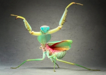 螳螂是可怕的食肉動(dòng)物,它們能吃掉小蜥蜴、青蛙、蛇、蜂鳥,甚至小嚙齒動(dòng)物。在這個(gè)自相殘殺的世界,大型動(dòng)物(鳥和嚙齒類動(dòng)物等)吃掉小型動(dòng)物更普遍,即使最有膽量的螳螂到了緊要關(guān)頭,也需要防御措施?!耙У裟X袋”是人類常干的事,螳螂通常會(huì)通過揮舞前腿、展開翅膀、露出翅膀下面顏色鮮明的斑紋,來威懾對(duì)手。 |